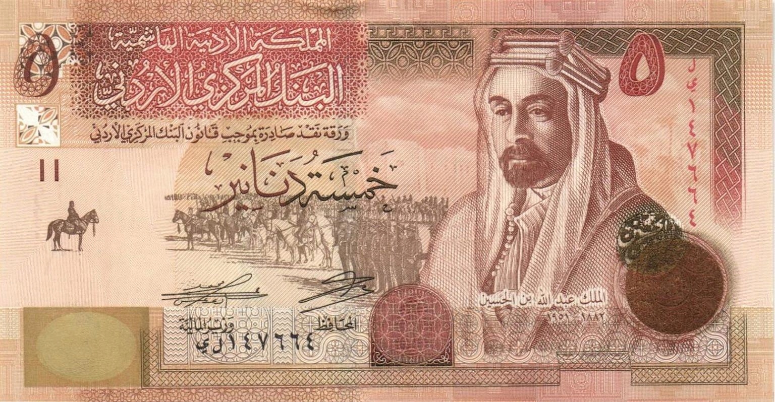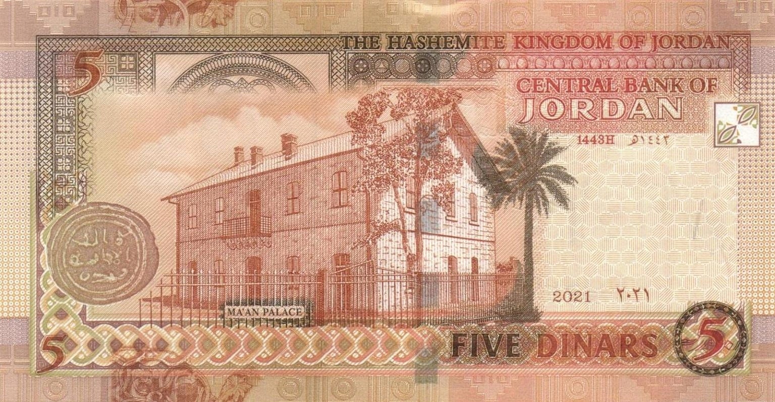 5 динаров от Иордания-2021г. (P-35k) в абсолютно отличное банковское состояние и (UNC).