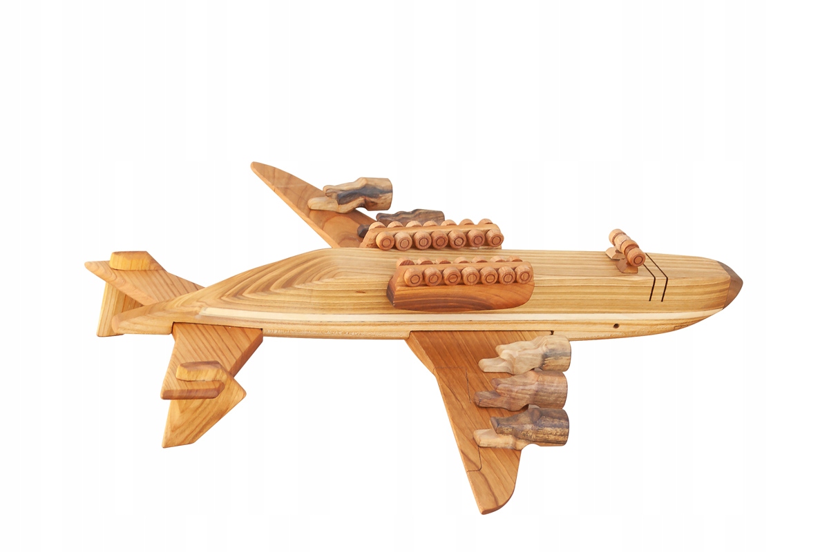 Duży model samolotu wykonany z drewna - ręcznie, rzemieślniczymi metodami. Rozpiętość skrzydeł to aż 52,5 cm.