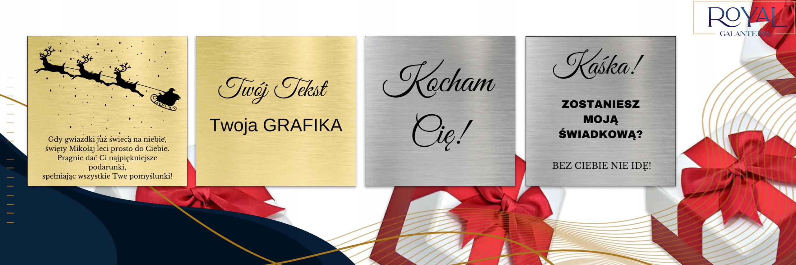 Dodając usługę dodatkową "zapakuj na prezent" podczas składania zamówienia, zapakujemy biżuterię w większe pudełeczko i dodamy do niego grawerowaną tabliczkę z dedykacją.