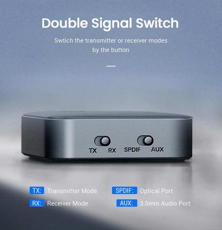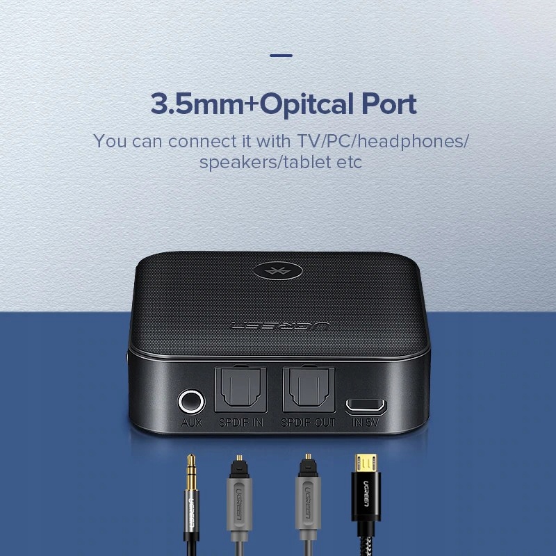 Służy do przekazywania muzyki nadawanej przez komunikację Bluetooth z urządzeń takich jak smartfon czy tablet, do odbiorników typu amplituner, zestaw głośnikowy lub odtwarzacz car audio za pomocą przewodu aux 3,5mm, Toslink lub aux/RCA.