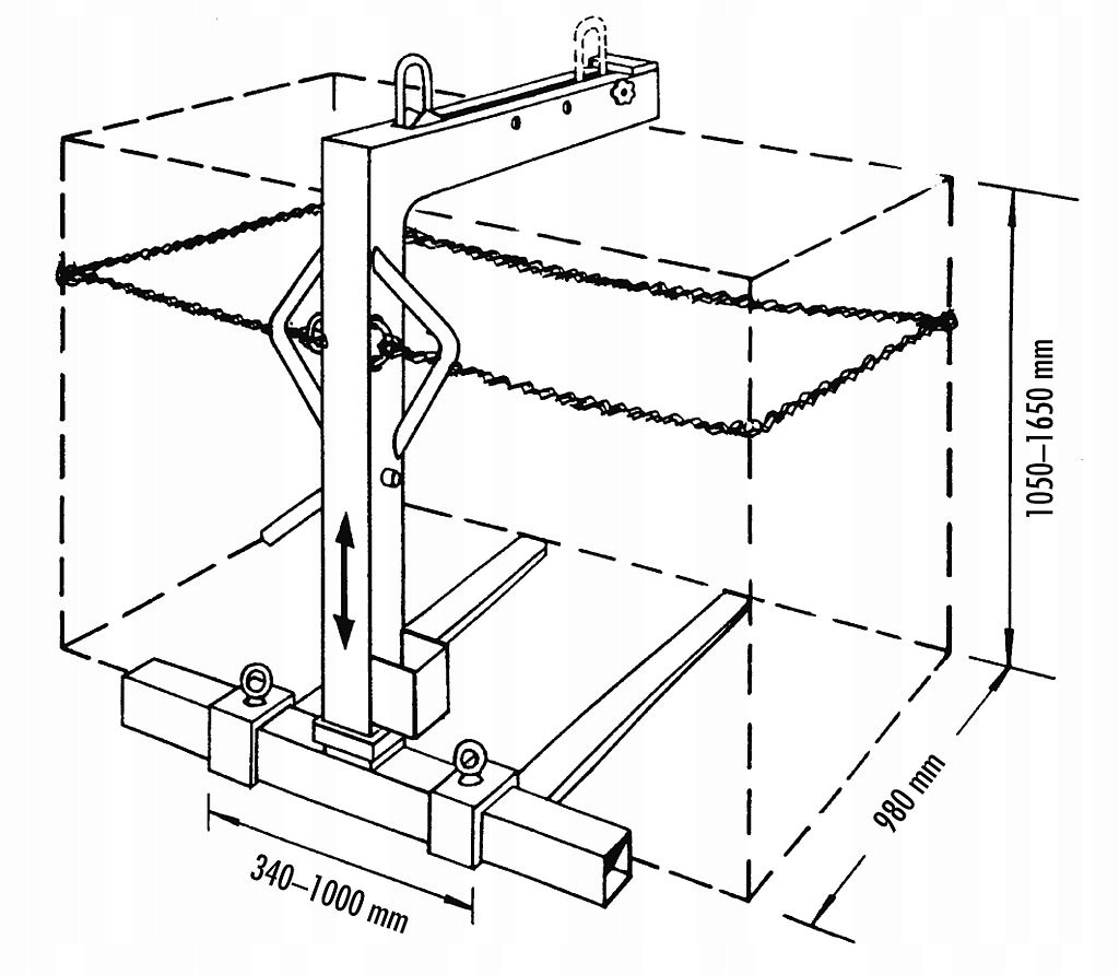 ZASTOSOWANIE: - do transportu pionowego i poziomego palet jako osprzęt do żurawia, suwnicy, dzwigu, hds, koparki, ładowarki lub innego urządzenia do transportu pionowo-poziomego mającego dodatkowe wyjście hydrauliczne do sterowania siłownikiem wideł./tzw. 5 i 6 funkcja/