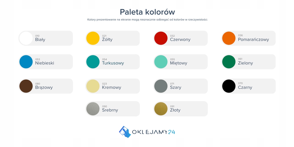W przypadku braku informacji na temat koloru oraz wersji naklejki przygotujemy naklejkę zewnętrzną w kolorze białym.