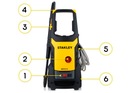 Пистолет, копье, сопло, шнур питание и шланг могут храниться на корпусе шайбы, что экономит место, необходимое для хранения