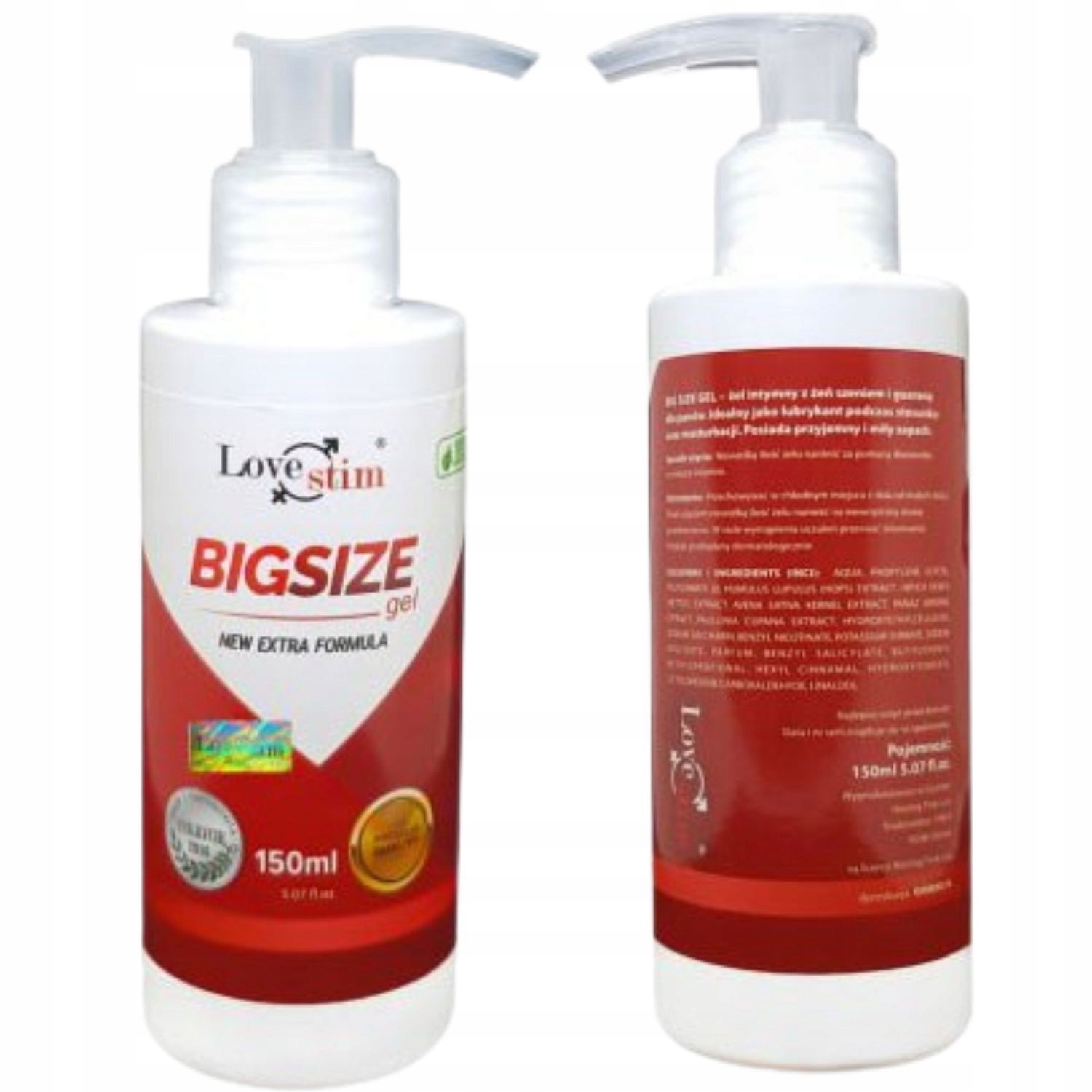 Żel intymny z żeń-szeniem i guaraną - mający na celu napompowanie penisa co uczyni go większym a erekcję mocniejszą. BIGSIZE 150ml to profesjonalny żel z nową extra formułą. Opracowaną specjalnie dla mężczyzn, chcących poprawić swoje osiągi seksualne. Żel przez swoje składniki aktywne, między innymi żeń- szeń i guaranę, może przyczynić się do powiększenie rozmiaru na czas stosunku, oraz do poprawy erekcji.