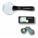 1. Bez oprawkowa lupa z uchwytem o 3 - krotnym powiększeniu, dzięki swojemu rozmiarowi ( średnica soczewki 90 mm ) oraz 2 białym lampkom LED, umożliwia całościowe oglądanie większych obiektów.