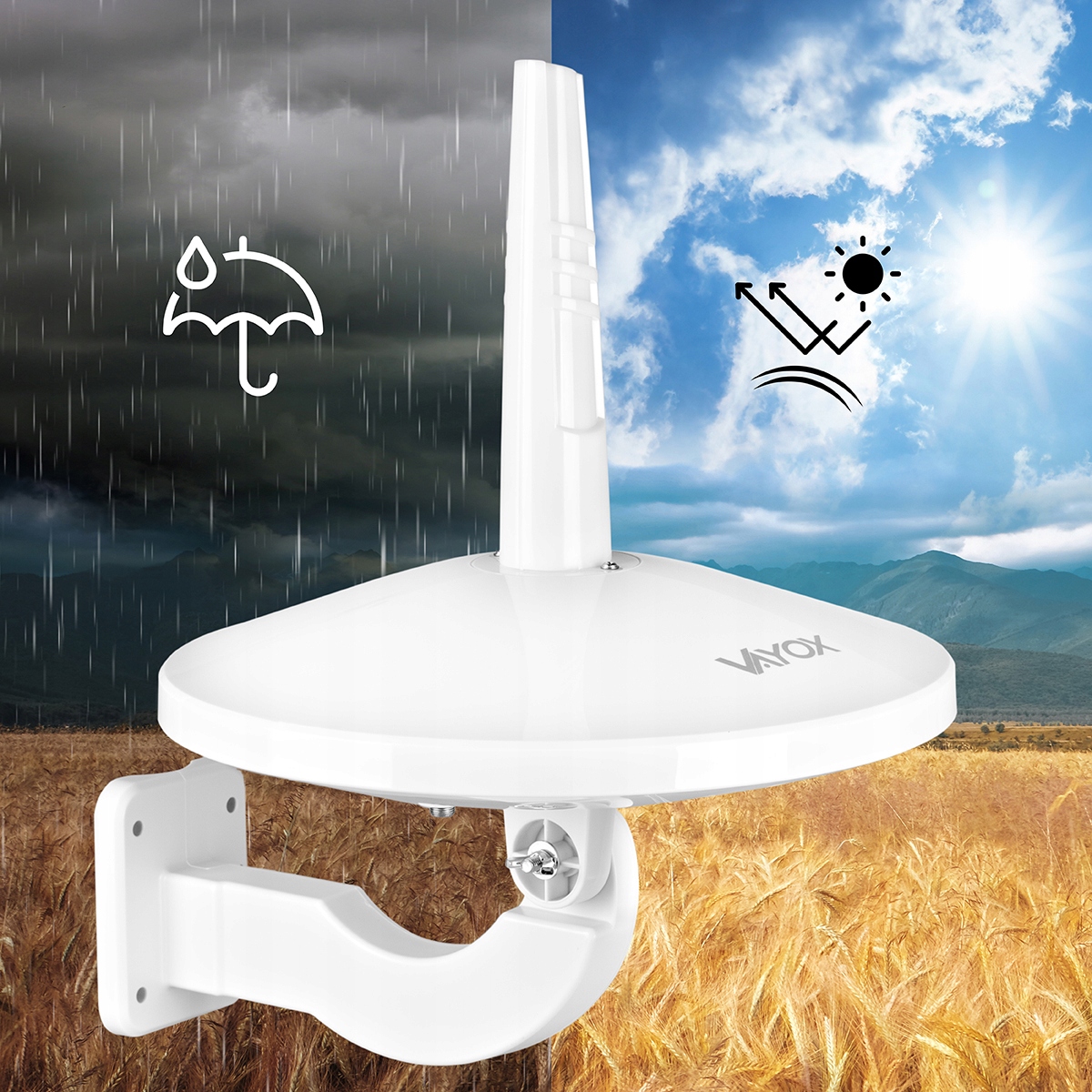 Antena jest odporna na działanie niekorzystnych czynników zewnętrznych, w tym deszczu i promieniowania UV.