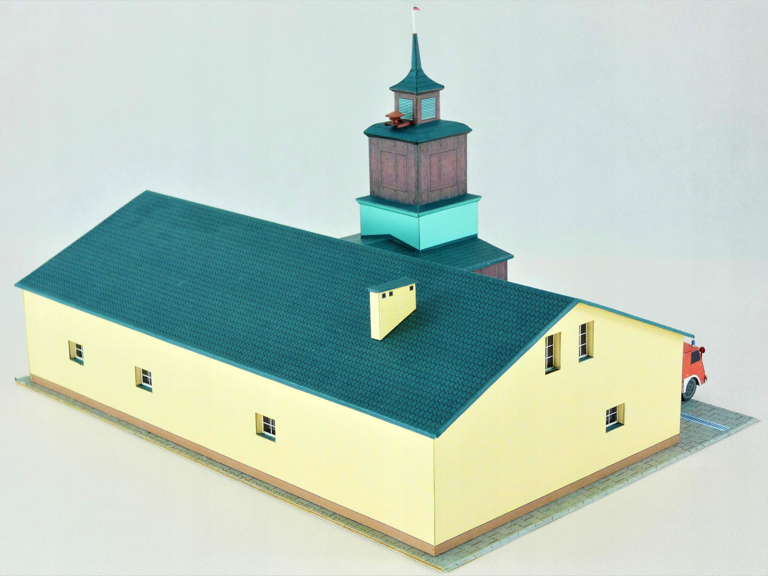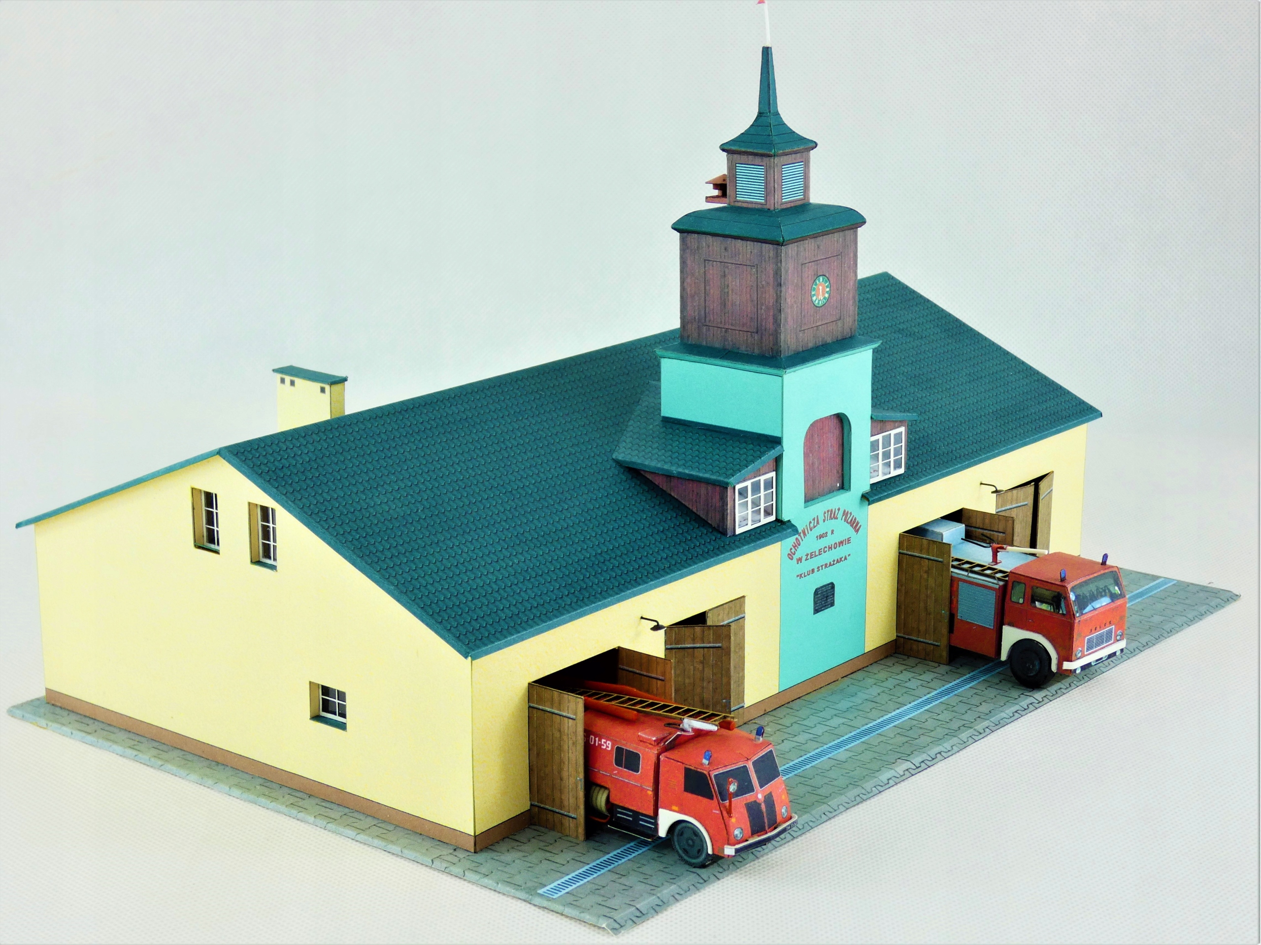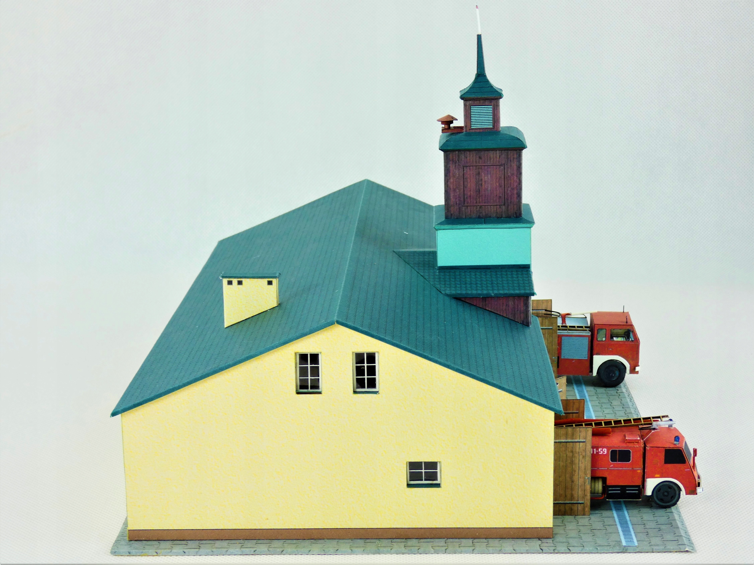 W komplecie budynek remizy oraz dwa samochody strażackie.