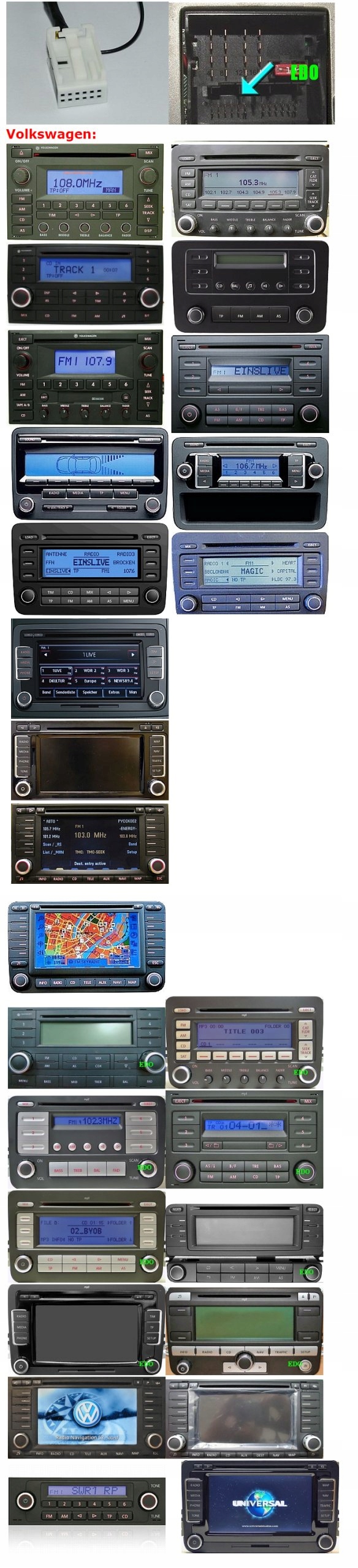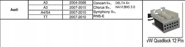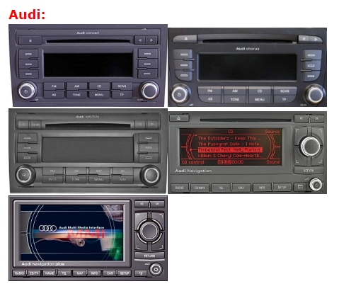 Хор 3, CONCERT 3, SYMPHONY 3, NAVIGATION PLUS 3, DELTA 6, DELTA 7, NAVI BNS 5.0 (BEZ MMI), ALTEA CD01