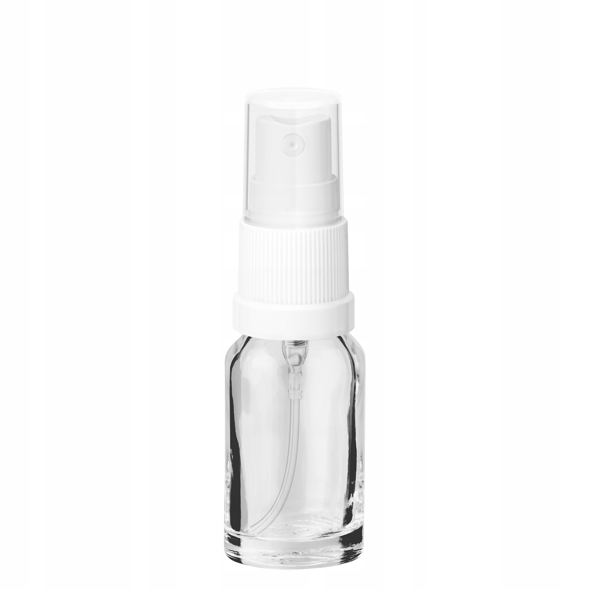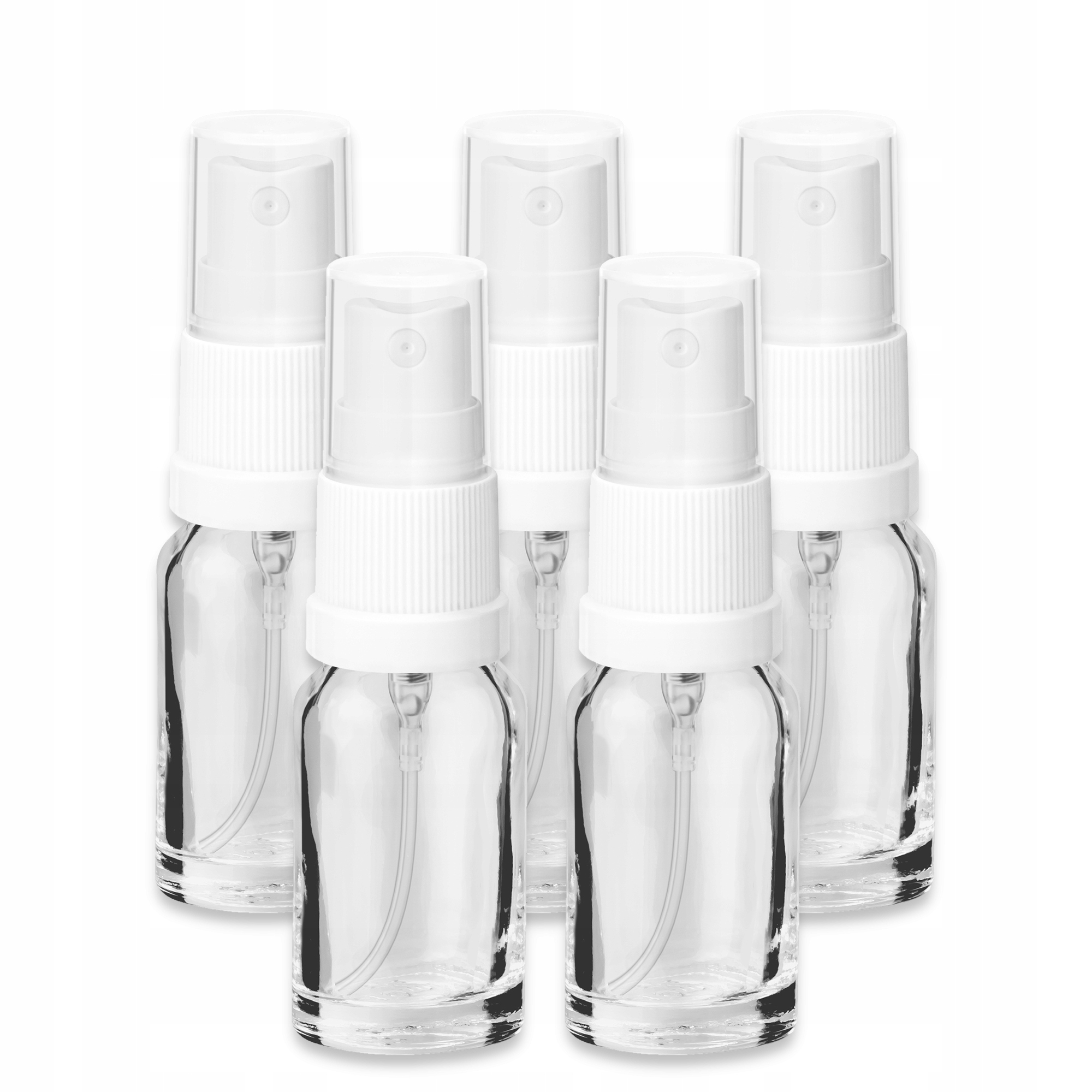 Praktyczny zestaw pięciu szklanych butelek o pojemności 10 ml z białym atomizerem i przezroczystą nasadką. Idealne do rozpylania perfum, olejków eterycznych, mgiełek zapachowych i innych płynów. Bezbarwne szkło prezentuje zawartość w estetyczny sposób i pasuje do każdej aranżacji kosmetycznej.