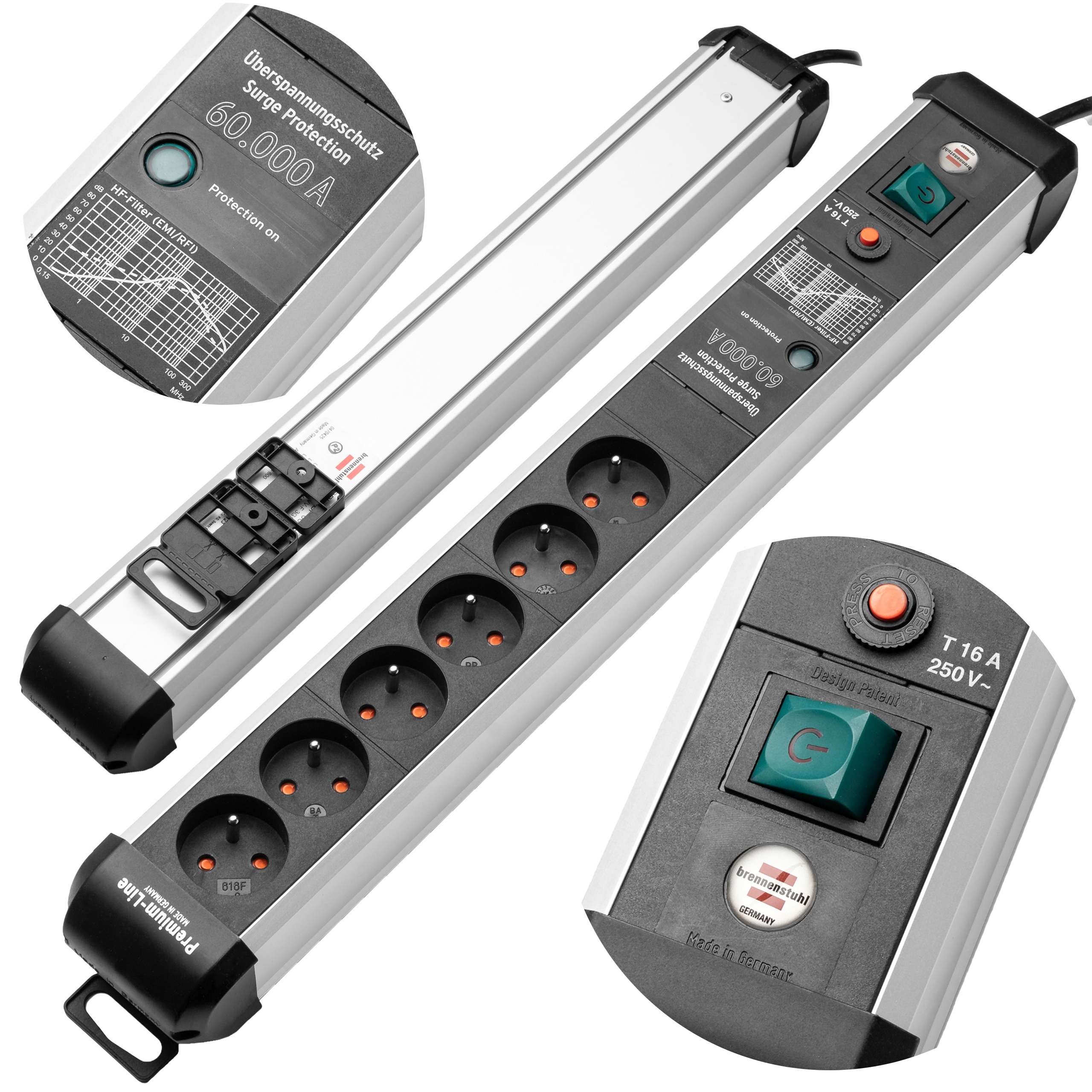 Listwa Premium-Protect-Line niemieckiej marki Brennenstuhl imponuje nie tylko jakością wykonania, ale także poziomem bezpieczeństwa. Przemyślana konstrukcja sprawia, że stanowi optymalne źródło zasilania w użytku domowym i biurowym. Posiada 6 gniazd, filtry zakłóceń HF i EMI/RFI oraz dwubiegunowy podświetlany wyłącznik bezpieczeństwa. Zapewnia bardzo wysoki poziom ochrony przed zakłóceniami w sieci elektrycznej (z sumą prądów upływu do 60 tys. A!).