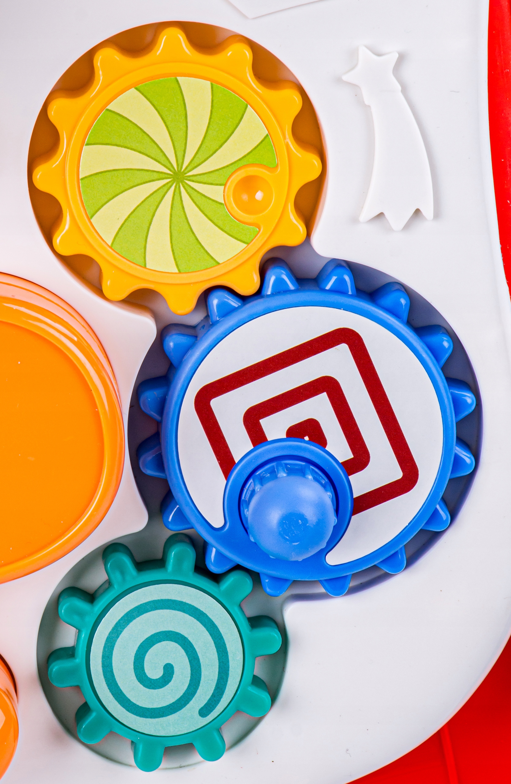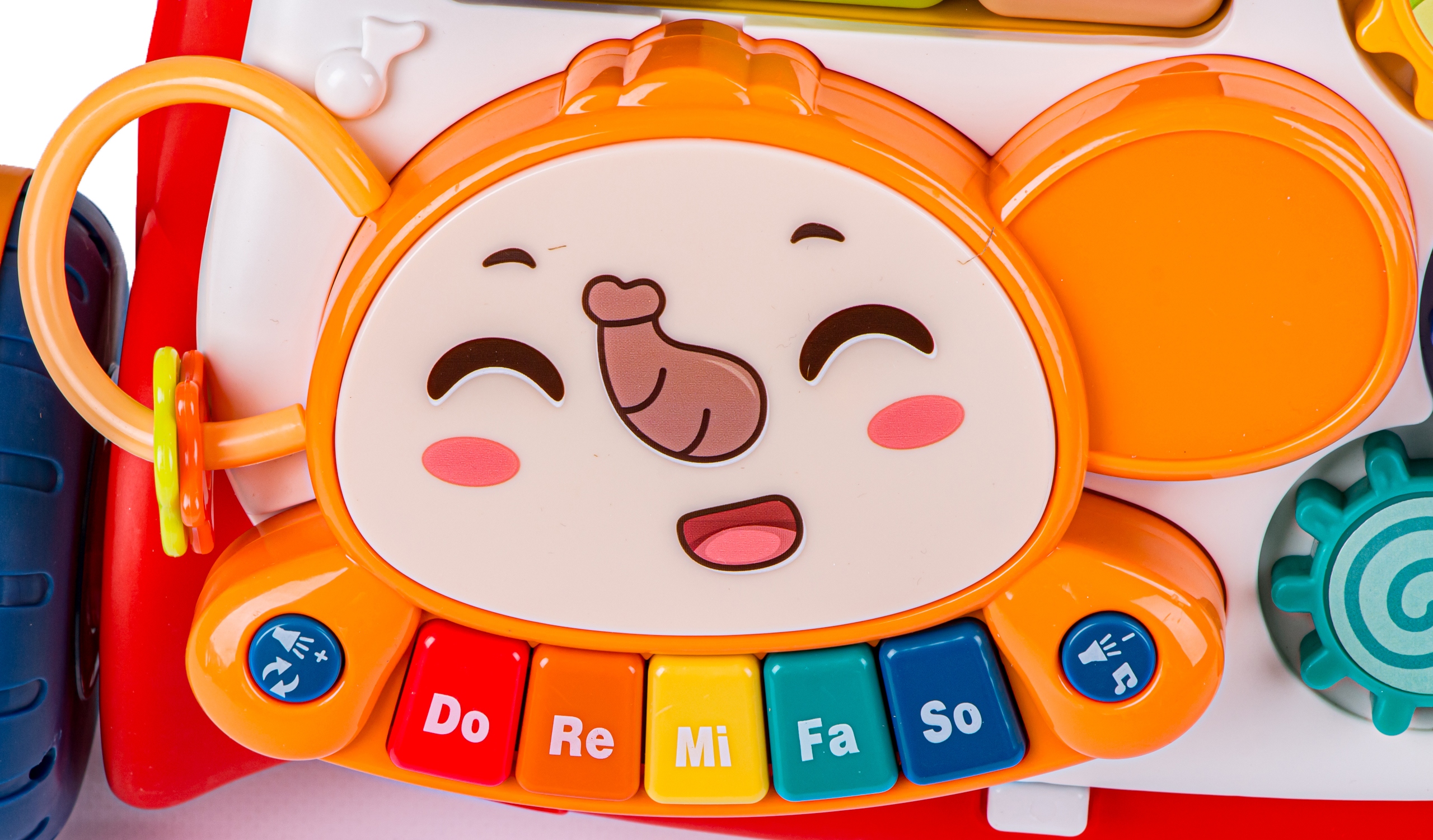 Przyciąga wzrok i zachęca do zabawy. Stolik nie jest wysoki aby dziecko w pozycji siedzącej miało swobodny dostęp do wszystkich funkcji.