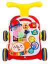 Zabawka w standardowej wersji pomaga w nauce chodzenia. Pchacz jest stabilny a koła tylne koła posiadają funkcję delikatnego zblokowania.