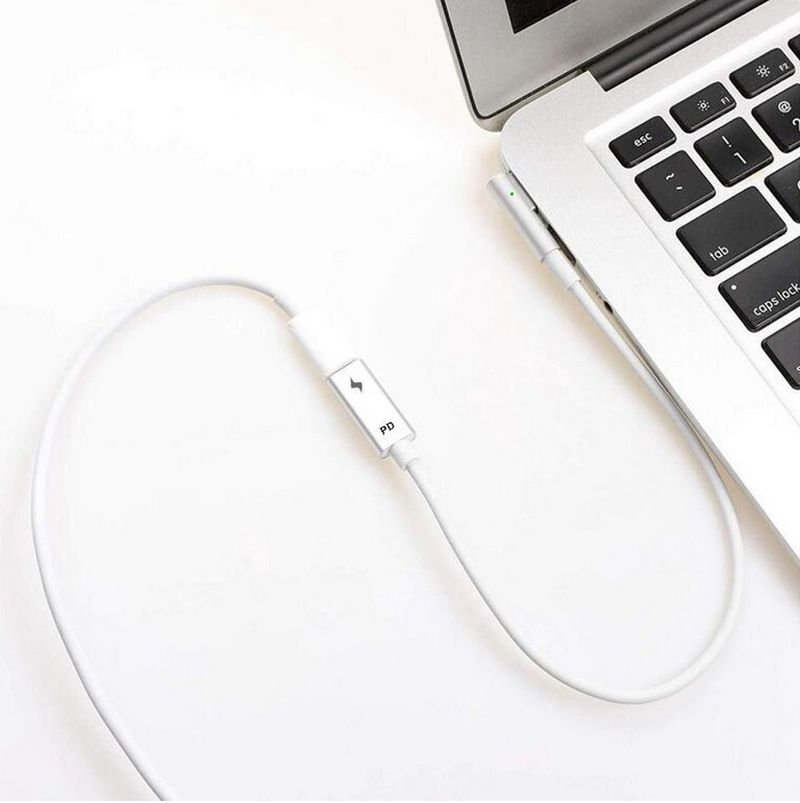 Wysokiej jakości kabel USB-C do MagSafe z końcówką L. Adapter ten pozwala korzystać z dowolnego zasilacza(co najmniej 60W) poprzez kabel USB-C do wejścia MagSafe w MacBookach. Proszę zwrócić uwagę, że moc PD musi obsługiwać wyjście 20V 3A i moc co najmniej 60W.