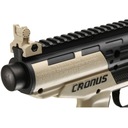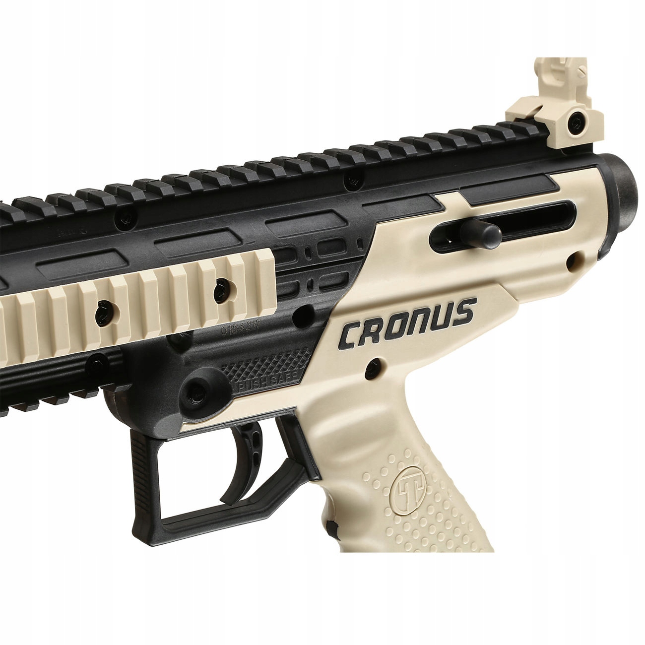 Marker Tipmann Cronus Basic to w zasadzie Tipmann 98c w nowej odsłonie. Posiada identyczne rozwiązania konstrukcyjne wewnątrz, natomiast całość zamknięto w trwałym kompozytowym body. W efekcie powstał lekki marker o militarnej stylistyce w kolorystyce tan. Przy zastosowaniu kompletu modów bez problemu może przeobrazić się w wersję tactical.