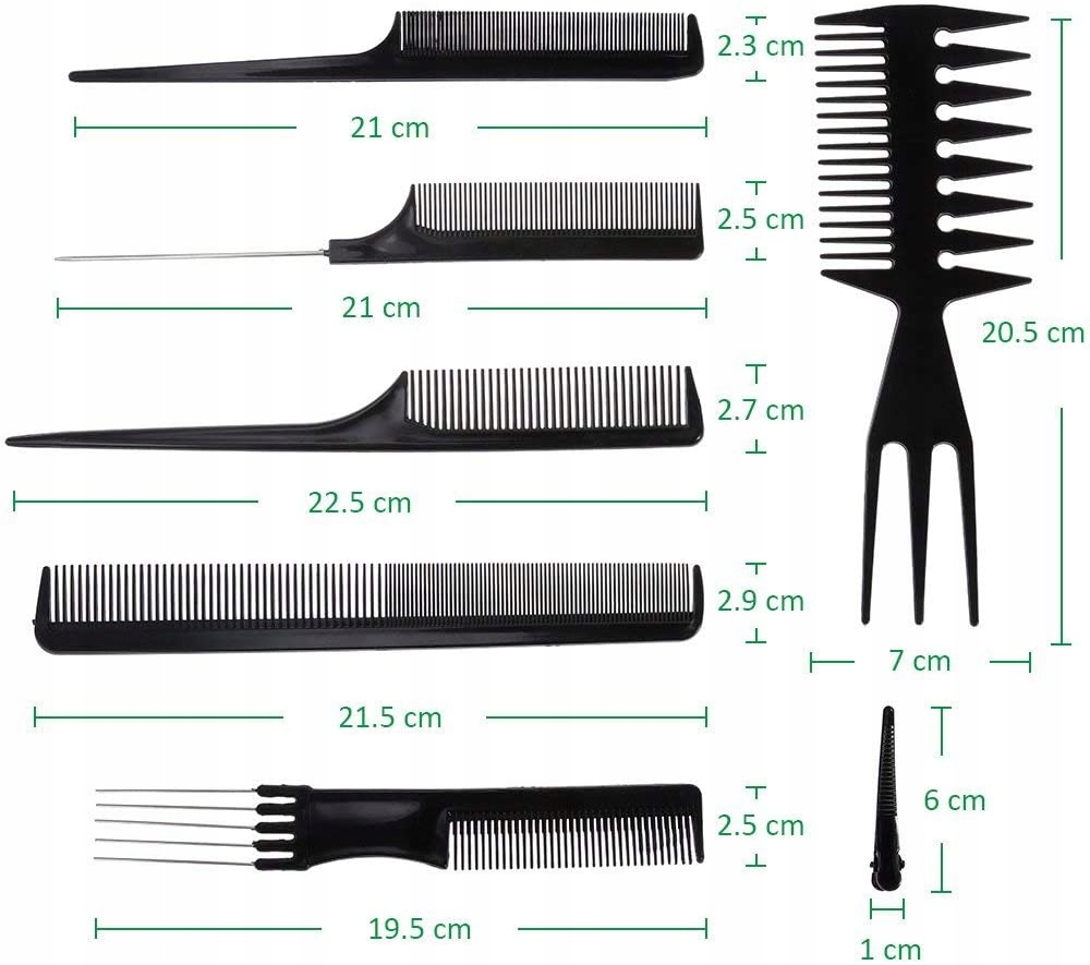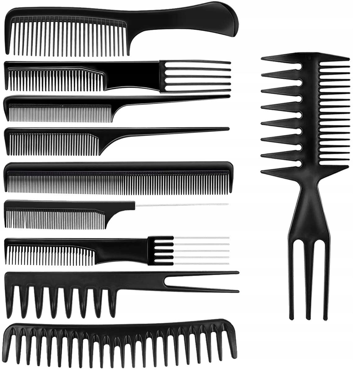10 различных расчески, заключенные в удобный чехол. Обязательный профессиональные парикмахерские и парикмахерские салоны.