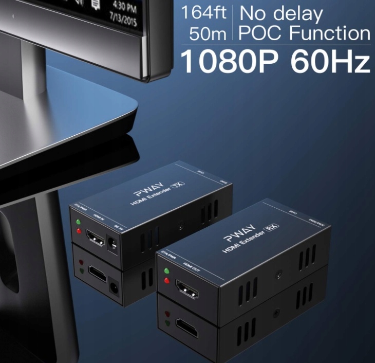 Wykorzystuje nieskompresowaną technologię dla bezstratnej transmisji dźwięku. Obsługa rozdzielczości 1080P i sygnału 3D, odległość do 50 m nad cat6 (zalecamy użycie cat6 lub lepszych kabli), zgodność z HDMI 1.3.