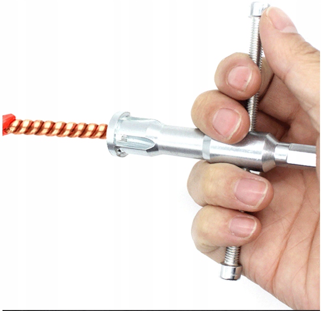 Świetnie sprawdzi się przy skręcaniu przewodów elektrycznych (YDY). Narzędzie najlepiej wprowadzić do uchwytu samozaciskowego wkrętarki (wiertarki).