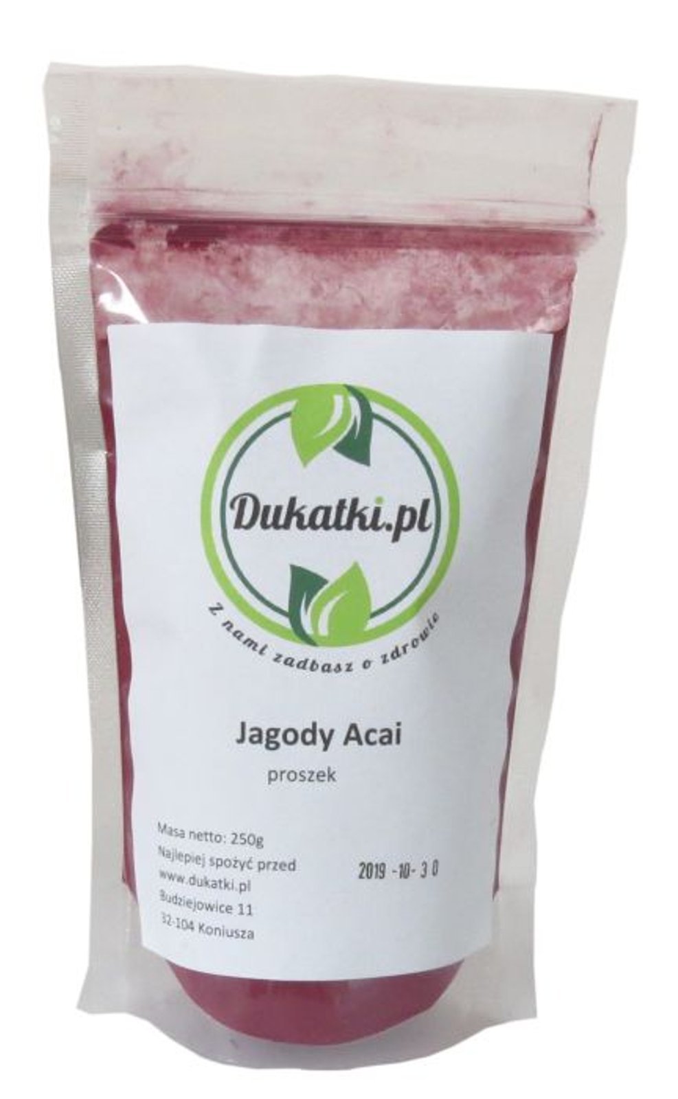 Opis produktu Jagoda palmy brazylijskiej stała się sławna dzięki badaniom doktora Alexsandra Schaussa który przeprowadził je w kierunku zdrowego odżywiania. Wyniki są zaskakujące jak wiele zalet posiadają dla organizmu człowieka, zaliczana jest jako superfood. Jagoda acai zawiera witaminy z B1, B2, B3, C, E, kwasy omega 6 i omega 9, beta-karoten, błonnik, żelazo, fosfor, wapń, potas. Jagody acai, proszek- wspomaga proces odchudzania regulując wagę ciała, podwyższa odporność, spowalnia proces starzenia, wspomaga profilaktykę chorób serca, poprawiają kondycję umysłową, oczyszczają organizm, poprawiają wzrok, obniżają ciśnienie krwi, regulują poziom cukru, zwalczają wolne rodniki, pomagają utrzymać dobrą kondycję fizyczną oraz poprawiają samopoczucie.Polecane dla wszystkich którzy dbają o ładny wygląd i dobre samopoczucie.