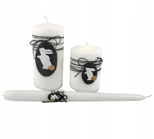 WIELKANOCNA ŚWIECA Z KRÓLIKIEM MATOWA BIAŁA