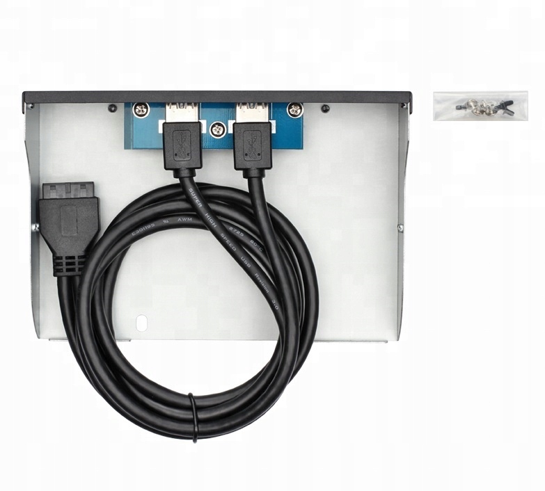 Panel przedni z portami 2x USB 3.0 dla użytkowników którzy posiadają płyty główne z wyprowadzeniem portu USB3.0 w postaci złącza 20pin. Umożliwia wyprowadzenie portów, by łatwiej i wygodniej podłączać do nich urządzenia. Panel pozwala rozszerzyć funkcjonalność płyty o dwa dodatkowe porty. Sprawdź czy płyta główna w twoim komputerze posiada 20pinowy port USB3.0, następnie zamontuj panel w wolnej przestrzeni napędu optycznego 5.25 cala na przednim panelu obudowy komputera, wepnij przewód do 20pinowego złącza USB3.0 na płycie głównej i gotowe. Dwa dodatkowe porty to możliwość podłączenia większej liczby urządzeń do komputera. Dzięki przepustowości USB 3.0 prędkość transmisji wzrasta nawet 10 krotnie, w porównaniu do poprzednich rozwiązań, co pozwala na znacznie szybsze kopiowanie, lub tworzenie kopii zapasowych cennych danych prywatnych i biznesowych.