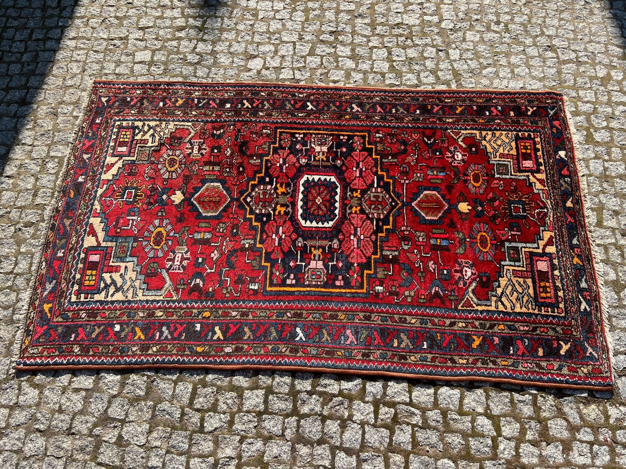 PRZEDMIOT: Dywan antyczny perski ręcznie tkany. Oryginalny Made in Iran z prowincji Hamadan. Posiada certyfikat autentyczności. W galerii przed przeceną kosztował 1.650 euro czyli około 8.000 zł. Jest unikatowy ze względu na swój wzór jak również kolor. Jest to dywan najwyższej klasy. Często nazywany jest „żelaznym dywanem“ z powodu jego wyjątkowej trwałości i wytrzymałości. Dywany te należą do najpiękniejszych dywanów na świecie. Uniwersalne wzory powodują, że dywan ten pasuje do wielu wnętrz.
