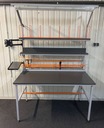 Столы и стойки они изготовлены из стальных профилей, которые были надежно закреплены с помощью лакировки порошкового покрытия, края профилей заполнены пробками