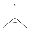 Легкий, студийный и открытый, осветительный штатив. Максимальная высота 200 см, рабочая высота 190 см, удобные секционные зажимы, 16 мм студийная головка с резьбой универсальный 1/4". Штатив предназначен для работы с малыми и средними лампами и комплектами освещение. Он отлично подходит для установки со вспышкой и фиксированным светом, софтбоксы, галогенные лампы типа RedHead.