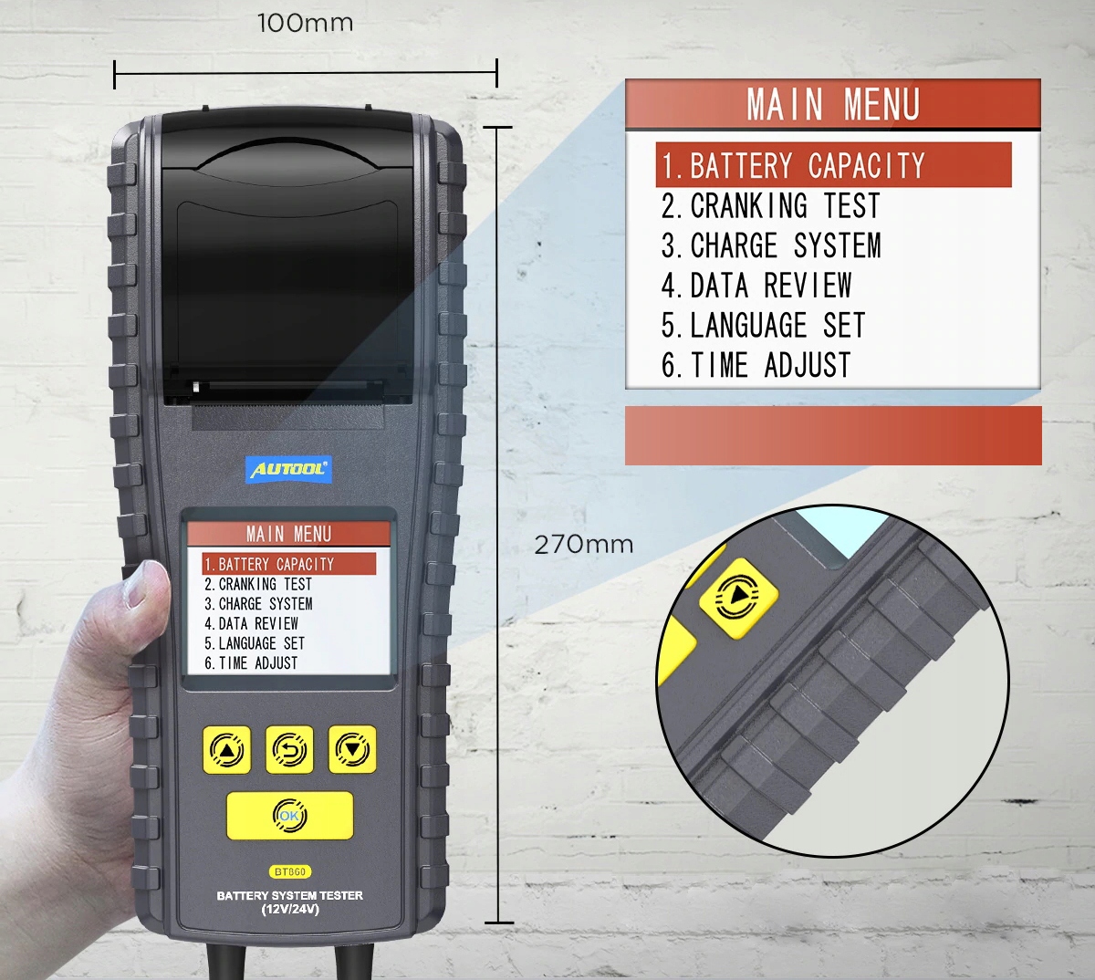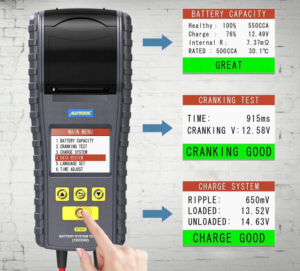 Тестер автомобильного аккумулятора AUTOOL BT-860 со встроенным принтером.