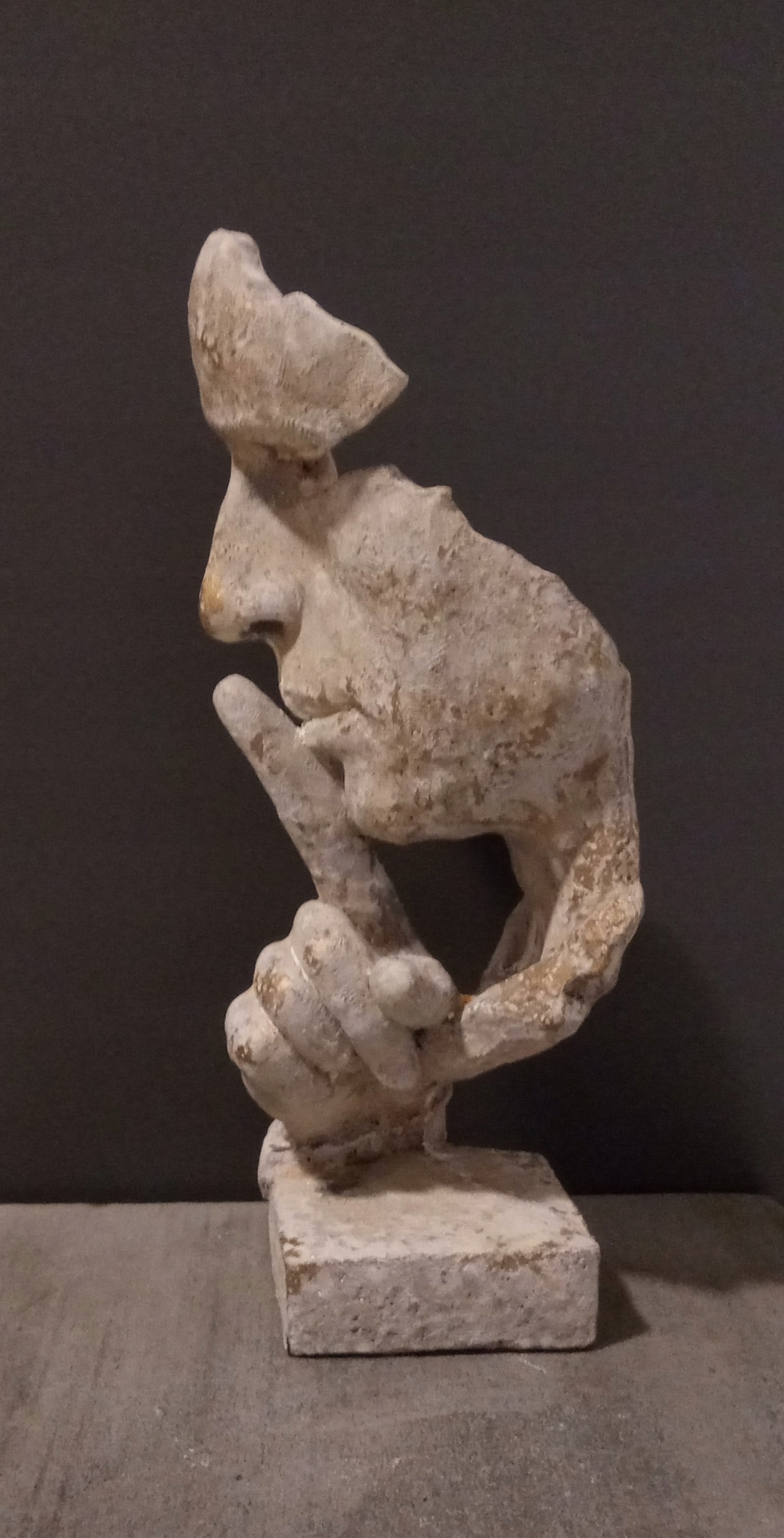 Rzeźba "Cisza".Wysokość 31cm.Materiał:konglomerat kamienno-cementowy.Kolory.brązu,miedzi,złota.