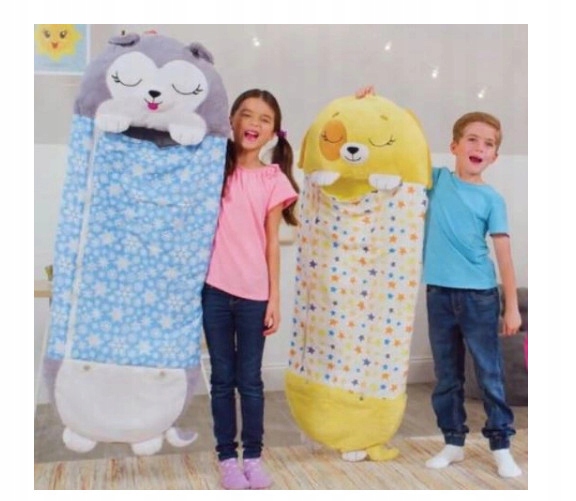 Śpiwór Happy Nappers to świetna poduszka zabawkowa, którą można rozciągnąć w śpiwór. Wesołe wzory spodobają się dzieciom i będą miały przyjaciela nie tylko do zabawy, ale także do spania. Jest wykonany z najwyższej jakości pluszu i nadaje się do domu, dziadków i podróży.