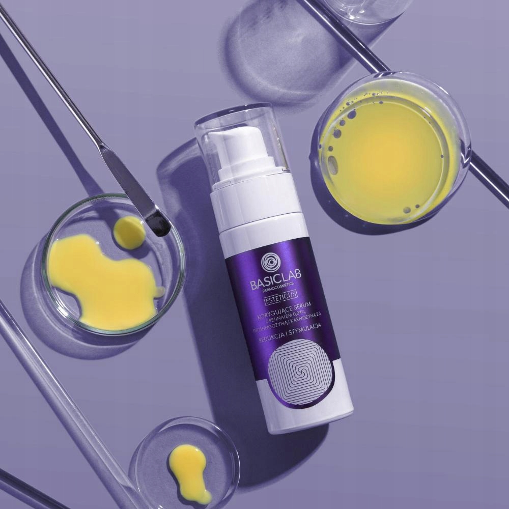 Korygujące serum z retinalem 0,07 procent, fitosfingozyną i Karnozyną 2.0 REDUKCJA I STYMULACJA, przeznaczone do wieczornej pielęgnacji cery, szyi i dekoltu, wykazuje skuteczne działanie przeciwzmarszczkowe i przeciwtrądzikowe.