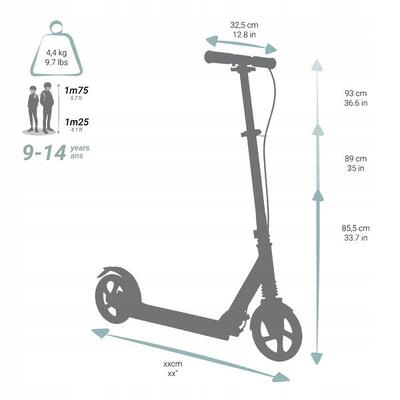 Для всех подростков ростом от 125 до 175 см и весом менее 100 кг. Итак, для много людей! Самокат MID 9 регулируется по высоте и оборудован соответственно для коротких маршрутов по городу (до 2 км). Для более длинных маршрутов или для более регулярной езды следует подумать о самокаты из ассортимента для взрослых: Town Oxelo.