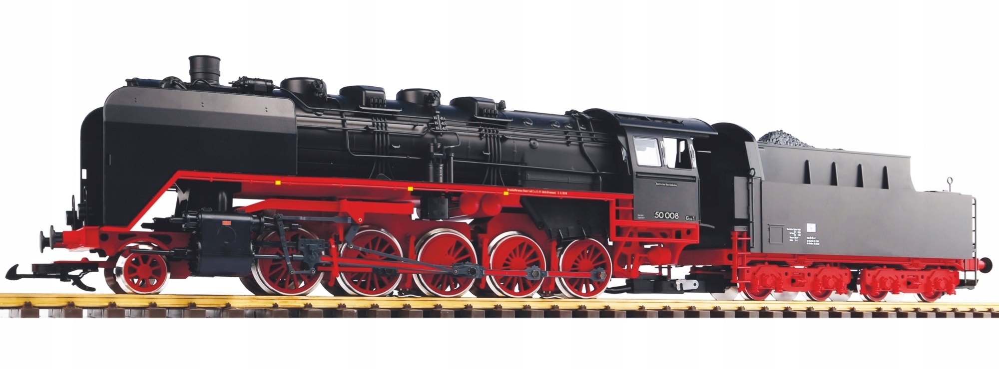 С новой разработкой паровоза класса 50.35 Пико исполняет желание, которое многие поклонников Садовой железной дороги с Востока и Запада часто спрашивали. Тщательно реализованная модель в соответствующая версия с мансардным окном в кабине водителя имеет самую совершенную краску и печать, а также очень подробный общий вид, соответствующий прототипу. Машина также впечатляет своей прочностью, прецизионные хромированные комплекты колес и очень безопасный блок отбора мощности с Тору. Многие отдельно используемые детали, например обтекатели, песочные водосточные трубы, номерные знаки и паровые свистки подчеркивают классический характер Локомотива. 50.35 имеет большие тяговые силы и отличные ходовые качества. Модель PIKO поставляется с изменением света в зависимости от направления (белый / белый) и подготовлен для несложной установки цифрового декодера и аудио с большой динамик.