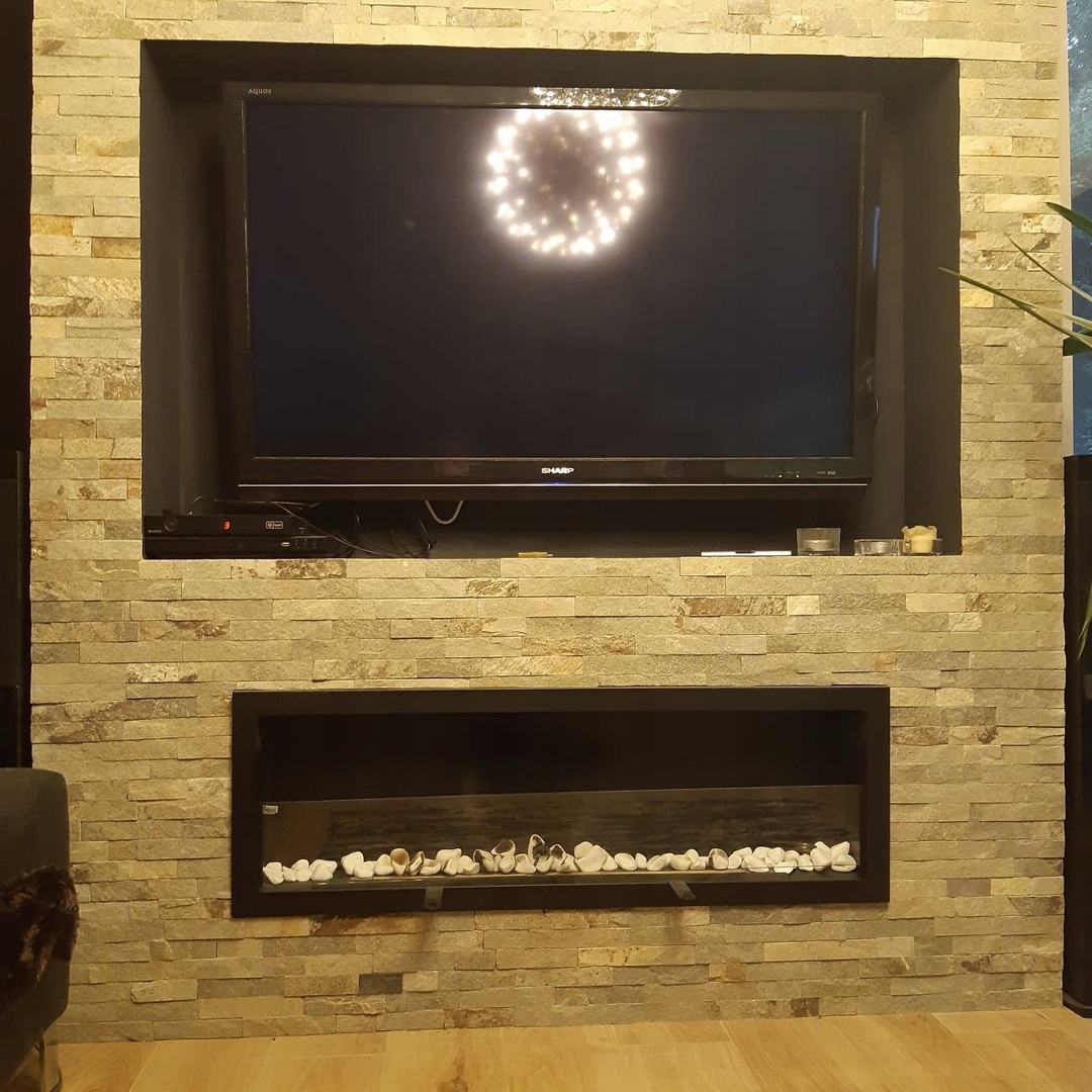 Нужный монтаж biokominka в застройке (или существующем отверстии стены) для того, чтобы скрыть в ней выступающий вниз горелки.