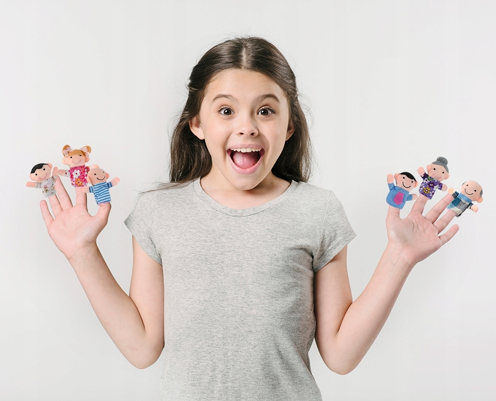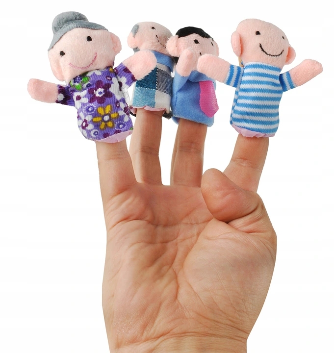 Zestaw składa się z 6 niezwykle sympatycznych pacynek-ludzików, które pasują na każdy palec dłoni. Dzięki temu, że do zabawy możemy użyć kilku palców, zwiększa się jej atrakcyjność, a teatrzyk jest ciekawszy oraz daje możliwość rozwoju opowieści. Pacynkami można bawić się w większym gronie używając nie tylko ręki, ale również np. ołówka czy kredki. W skład zestawu wchodzą postacie z rodziny, takie jak: mama, tata, syn, córka, dziadek oraz babcia.