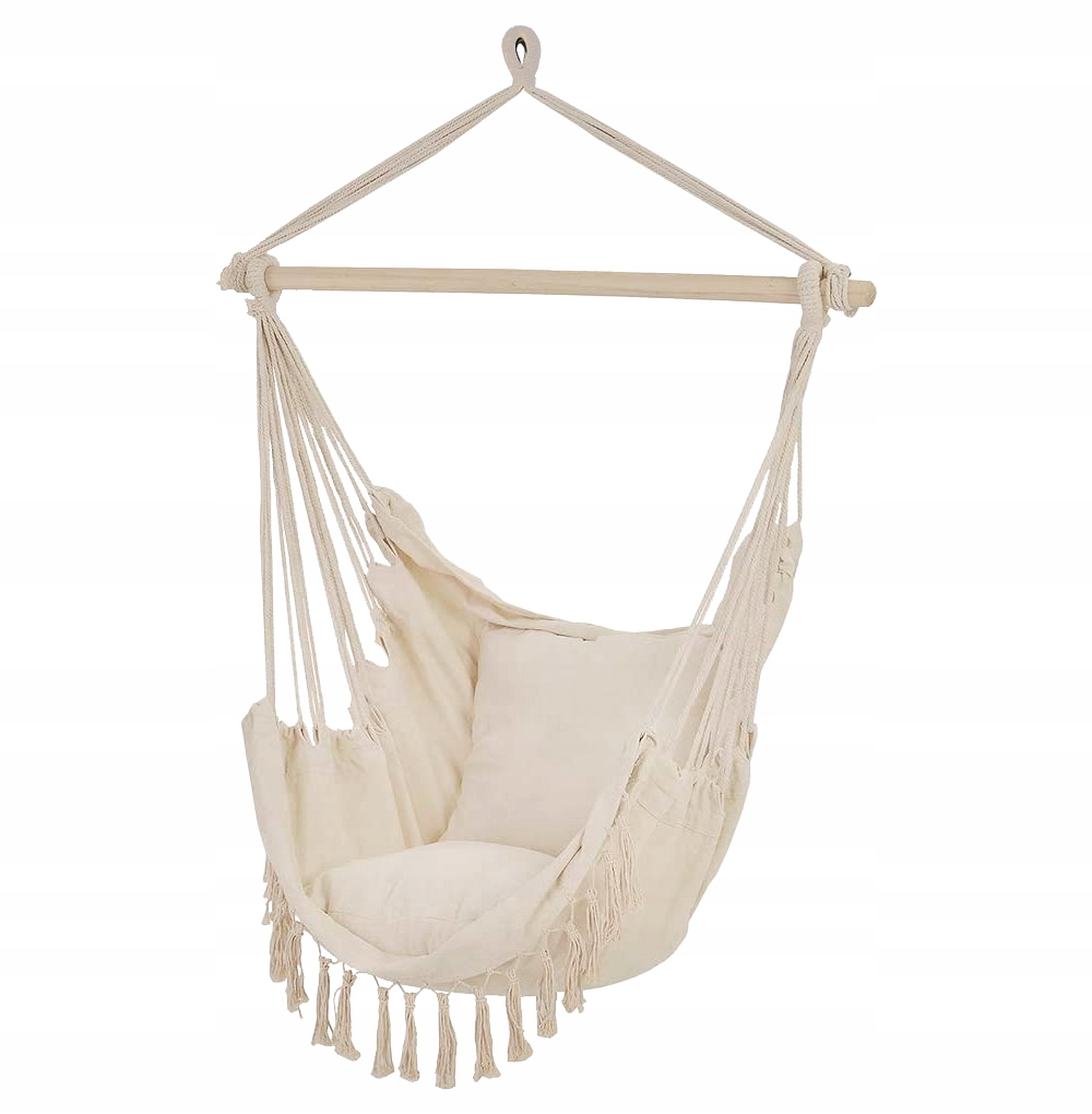 Huśtawka ogrodowa, fotel wiszący brazylijski z poduszkami 130kg beżowy