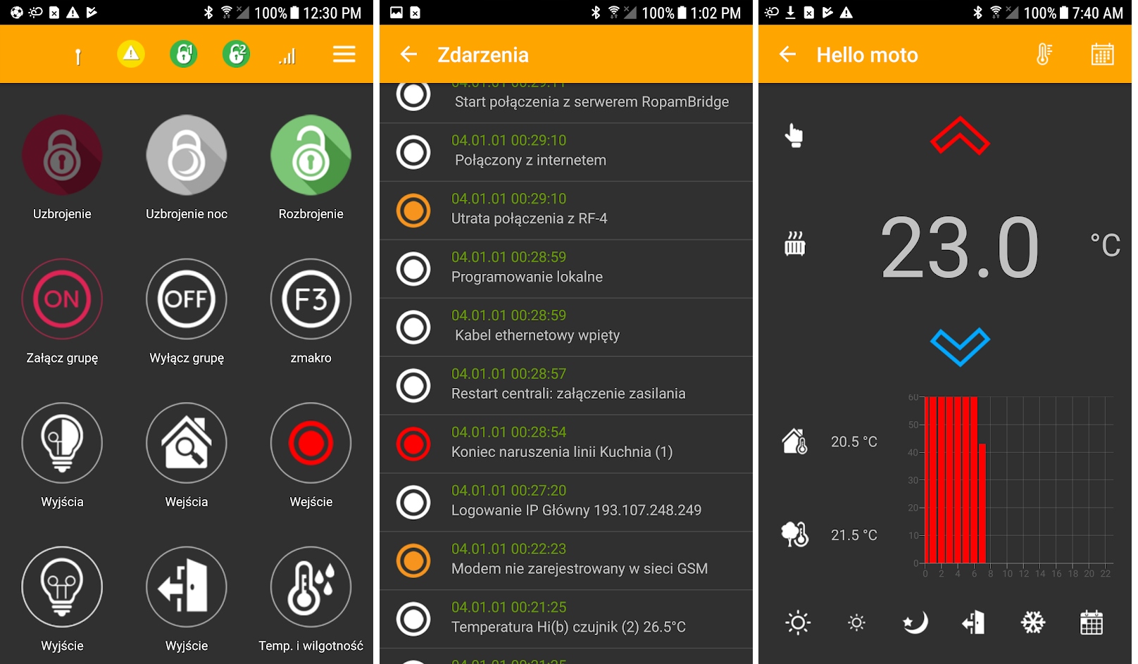 Za pomocą bezpłatnej aplikacji RopamNeo możliwe jest zdalne sterowanie systemem poprzez smartphone wyposażony w system operacyjny Android. Dzięki temu nie tylko będziesz mieć możliwość załączania i wyłączania systemu, ale także sterowania urządzeniami podłączonymi do wejść programowalnych płyty głównej, np. światłem, klimatyzacją, roletami, zraszaczami w ogrodzie czy też bramą wjazdową. Zaimplementowane w centrali funkcje logiczne pozwalają na tworzenie indywidualnych poleceń związanych z automatyką domową. Na przykład jeżeli czujnik temperatury wykryje dużą temperaturę możliwe jest automatyczne włączenie podlewania kwiatów, niezależnie od wcześniej zdefiniowanych harmonogramów.