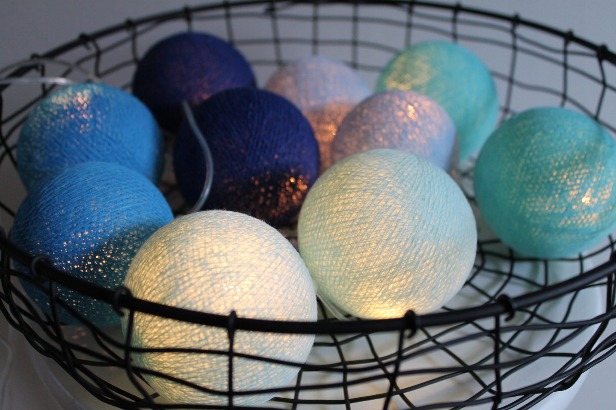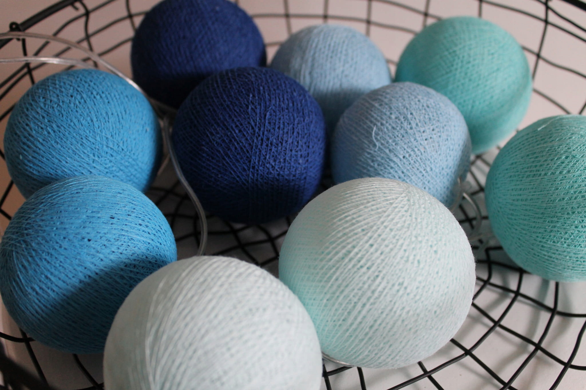 Размеры пуль: ср. 6-7 см; материал: пряжа хлопок; источник света: подключаемые светодиодные лампы, мощностью 0,99 Вт, Напряжение: 230 В - 50 Гц.