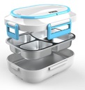 Lunch Box składa się wyjmowanego 3-komorowego pojemnika INOX, łatwego do umycia w zmywarce.