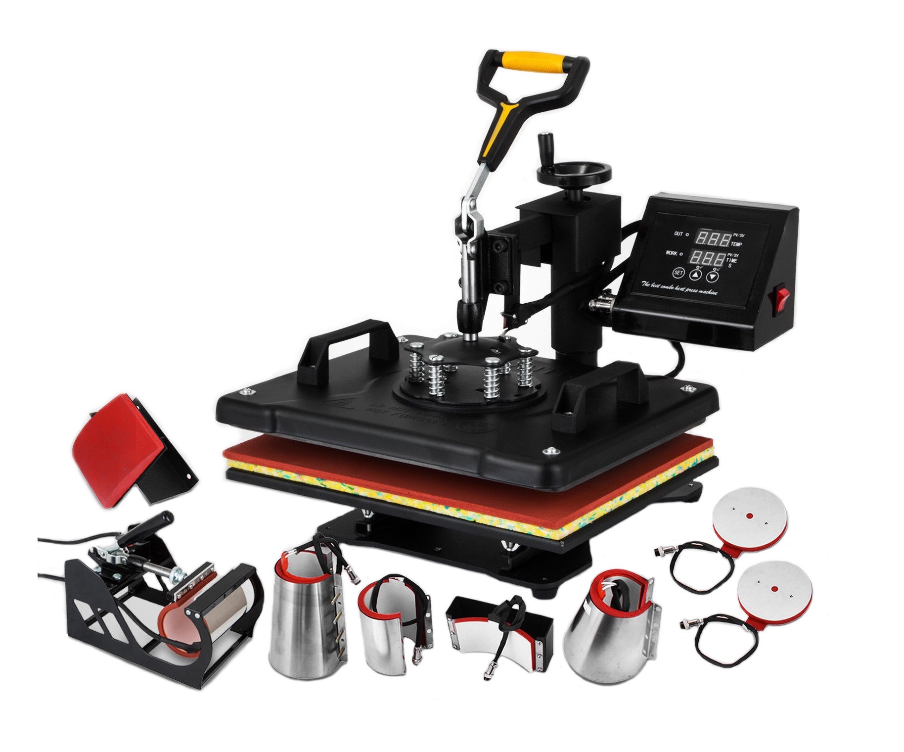 Prasa wielofunkcyjna 8 w 1 może być wykorzystywana do produkcji: koszulek, czapek, talerzy, płytek ceramicznych, kubków, podstawek pod kubki, podkładek pod mysz, puzzli, i wielu innych tkanin i materiałów.Prasa dysponuje dużym obszarem roboczym wykonanym z teflonu (38X38cm) zapewnia ona równomierny rozkład temperatury i ciśnienia na całej powierzchni płyty.