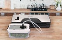 Устройство позволяет выбрать функцию всасывания в зависимости от типа пищи. Прилагается к комплект шлангов также позволяет всасывать воздух из специальных контейнеров вакуумные.