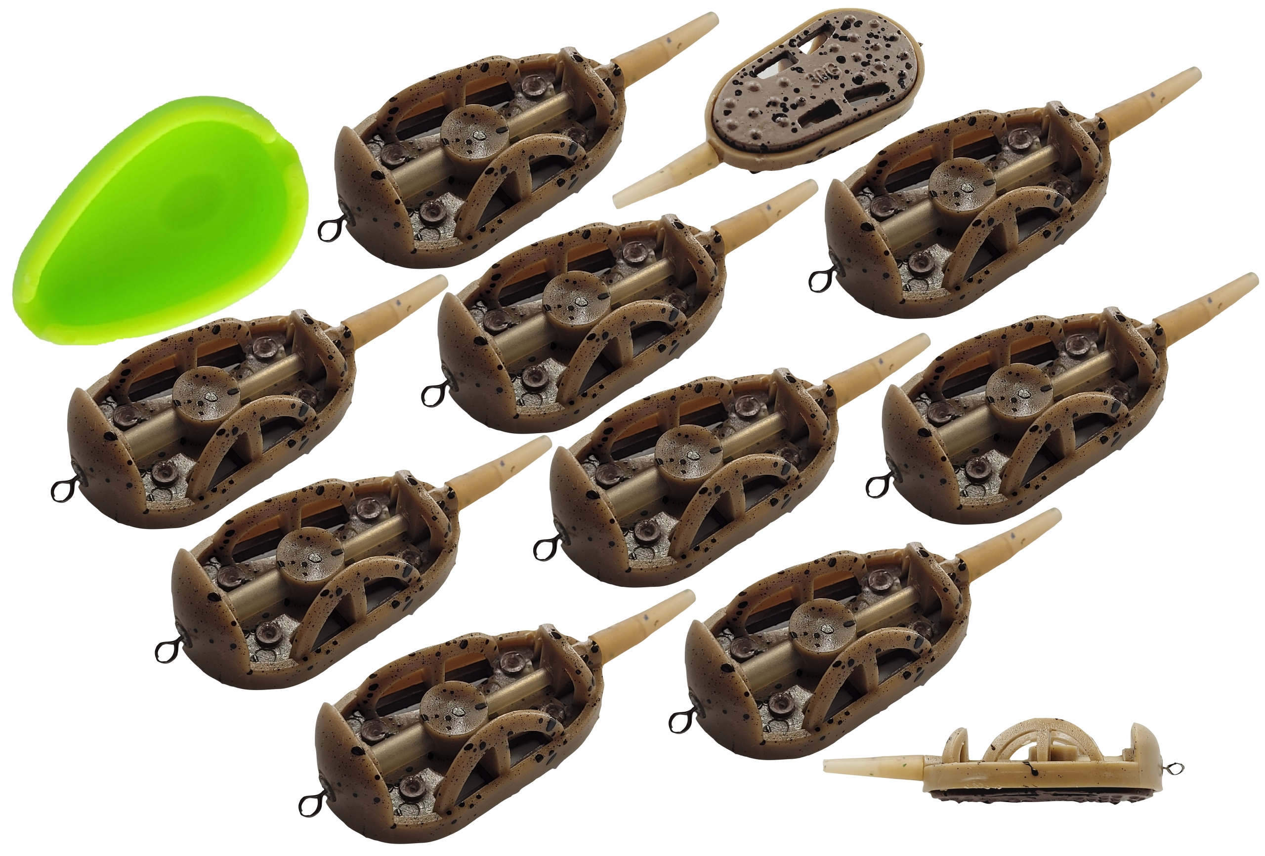 Taka konstrukcja pozwala na równomierne dozowanie zanęty na końcu odsłaniając haczyk. Ogromną zaletę jest fakt że podczas rzucania zestawu przynęta nie ma możliwości splątania się z racji tego, że haczyk schowany jest w koszyczku zanętowym.
