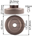 Wymiary: 67.8 x 62.8 27.5mm (średnica zewnętrzna x wewnętrzna x wysokość) otwór: 13.9 mm