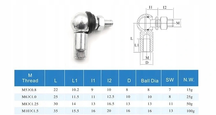 Gwint zewnętrzny - M8 x 1, gwint - RH