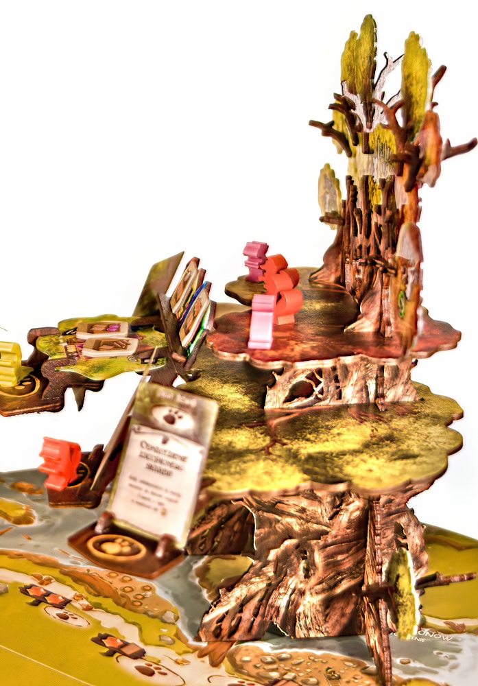 Kraina Everdell zawładnęła sercami całego świata. Jedna z najlepiej opracowanych graficznie gier ostatniego czasu wciąż się rozwija. Drzewo zostało zaprojektowane z myślą o grze z dodatkami, mówiąc stanowcze 'nie' pomysłowi 'płaskiej ziemi', czyli grze bez drzewka na planszetce. Dla tego oferujemy piękne drzewo z targiem (dodatek Święto Lata), z którego futrzani przyjaciele wyruszają na podbój doliny.
