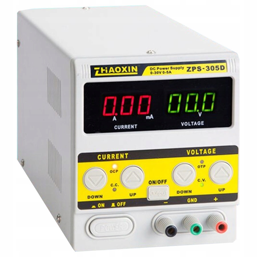 ZPS-305D to laboratoryjny zasilacz o regulowanym napięciu wyjściowym od 0 do 30V. Maksymalny prąd wyjściowy 5A. ZPS-305 produkcji firmy Zhaoxin to nowoczesna i nowatorska konstrukcja wśród zasilaczy laboratoryjnych - potencjometry do regulacji napięcia i prądu (ograniczenia) zostały zastąpione przyciskami do cyfrowego ustawiania żadanej wartości prądu i napięcia.