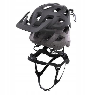 17 otworów wentylacyjnych. Zapięcie na podbródku: klamra. Regulacja na potylicy: pokrętło 360°. Komfortowe pianki: odpinane, możliwość mycia (dostępne w serwisie). Daszek: nieregulowany, odpinany. Zewnętrzna skorupa: poliwęglan Inmold. Kompatybilność: z kitką i lampką na zatrzask (tylną). Wielkość w rozmiarze M: długość: 30 cm, szerokość: 21 cm, wysokość: 15,5 cm.
