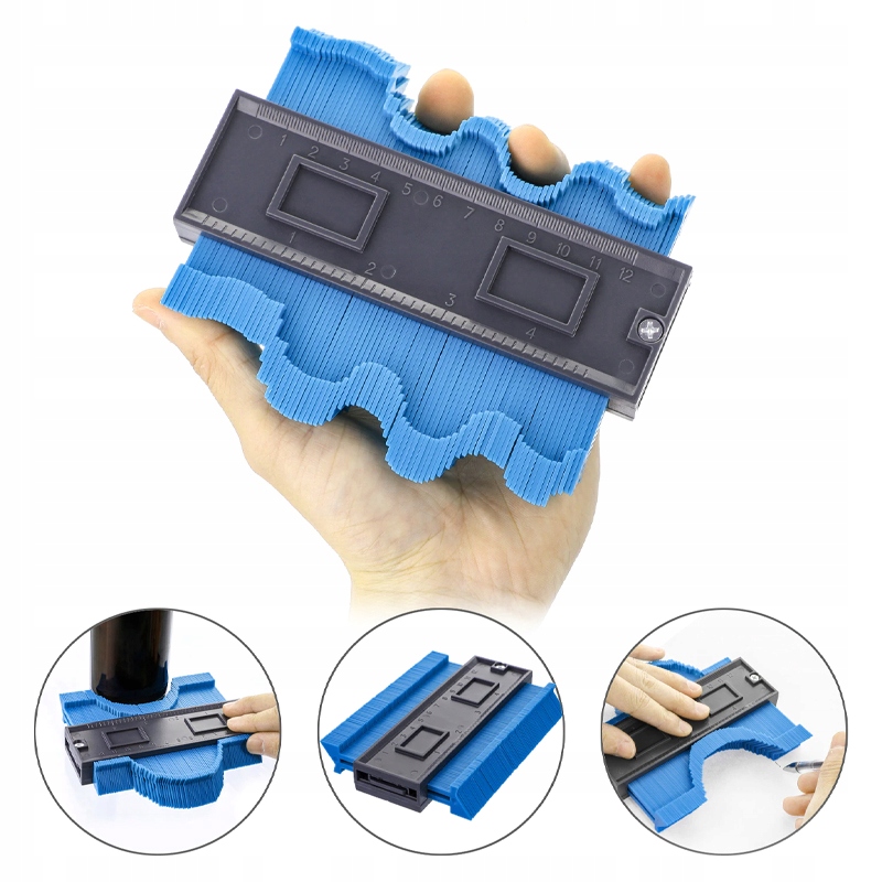 Uniwersalny 12- centymetrowy miernik do odrysowania konturów to idealne rozwiązanie dla każdego planującego remont domu. Narzędzie służy do odrysowania konturu przedmiotu a następnie odwzorowania go np. na panelach podłogowych czy płytkach. Pozwoli ci uzyskać idealne proporcje, dzięki czemu zawsze i wszedzie uzyskasz idealny kształt np. płytek do krzywej sciany itp. Szpilki we wzorniku są bardzo elastyczne, dzięki czemu pomiar nigdy nie był aż tak prosty a cięcie stanie się przyjemnością.