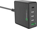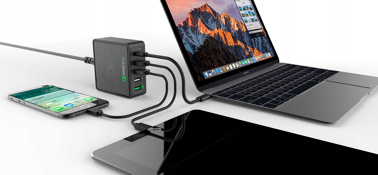 Wysokiej jakości ładowarka sieciowa marki Winner Group - 5 portowa ładowarka USB. W ładowarce zaimplementowano najnowszą technologię QC 3.0. Ładowarka dzięki tej technologii rozpozna urządzenie przystosowane do szybkiego ładowania i naładuje telefon znacznie szybciej niż standardowe ładowarki. Technologia Quick Charge korzysta ze zmiennego napięcia 5V, 9V i 12V i pozwala naładować 50% baterii w niecałe 20 minut. Jednym z portów ładowarki jest port USB Typ-C, który ładuje maksymalnym prądem 5V 3A.