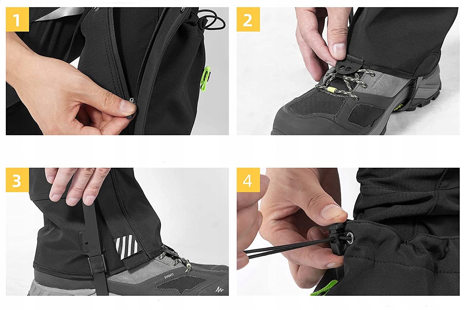 Гетры изготовлены из нейлона 600d Oxford. Имеют отличная устойчивость к разрыву предназначена для защиты ноги или брюк от порезов. Крытый конструкция застежки обеспечивает лучшую защиту ноги.